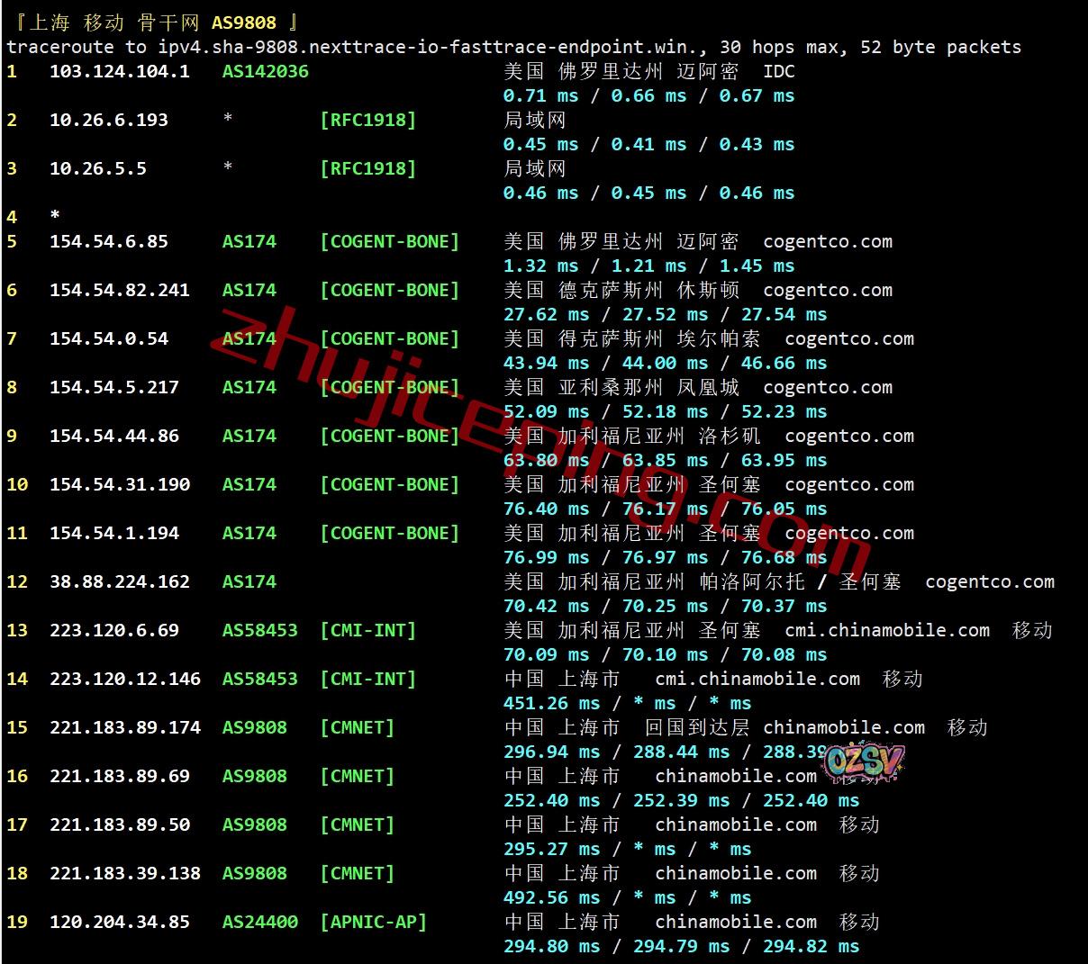 上海方向:走cogent到圣何塞,从移动CMI圣何塞直连回国