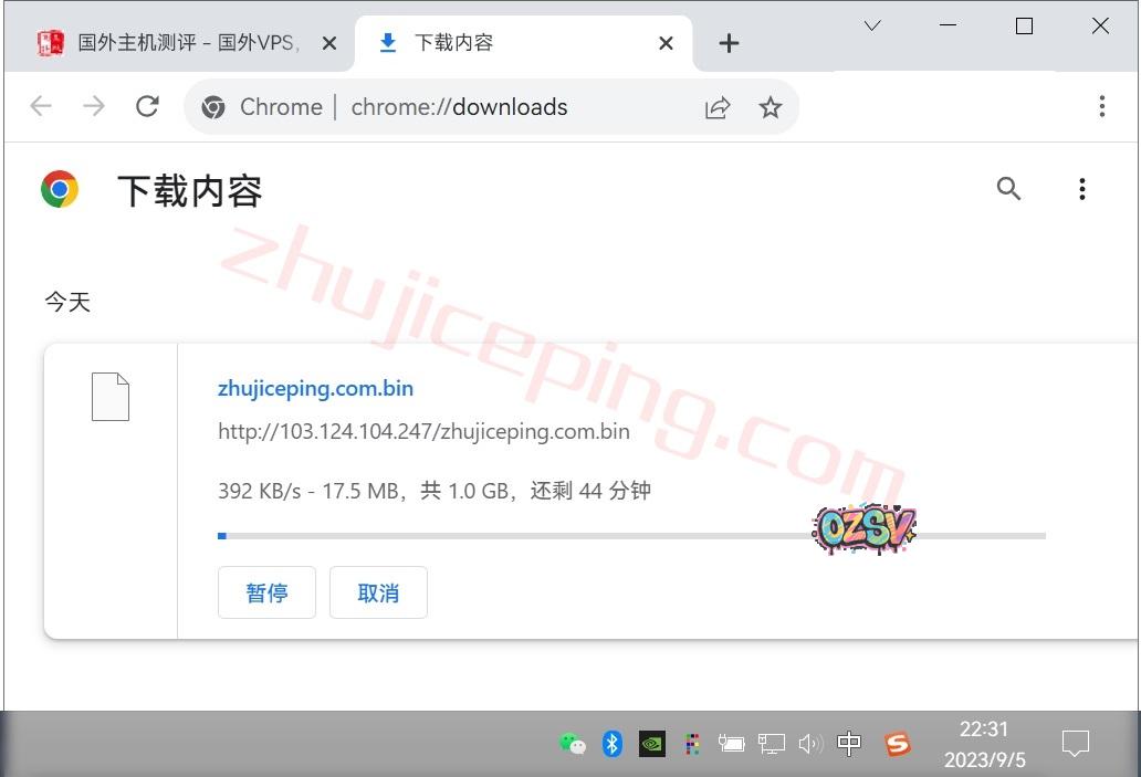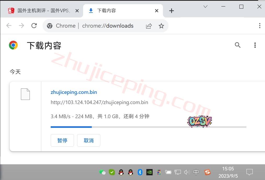 存放在测试VPS上的文件,广州联通家庭宽带直接下载,大致速度: