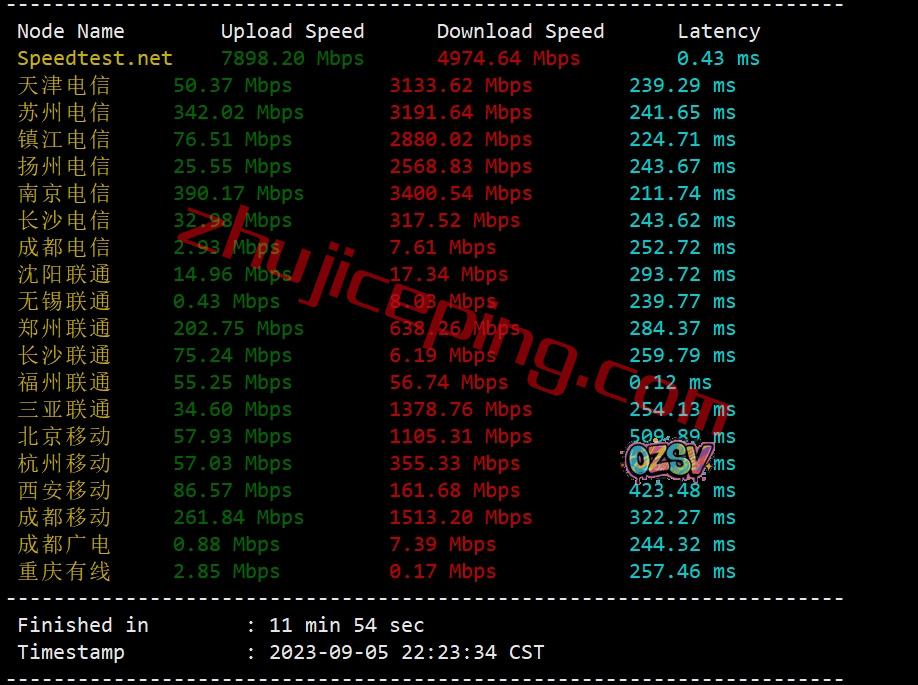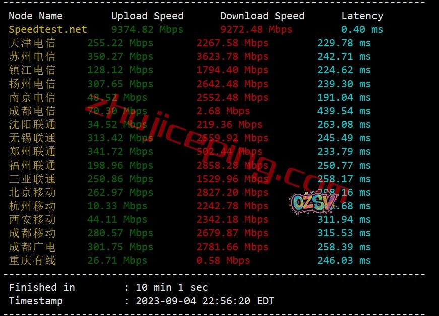 我们用speedtest在国内的三网多节点跑一下上下行,看看能冲到多少?注意下EDT时间比北京时间晚了12个小时,所以实际上就是国内的白天: