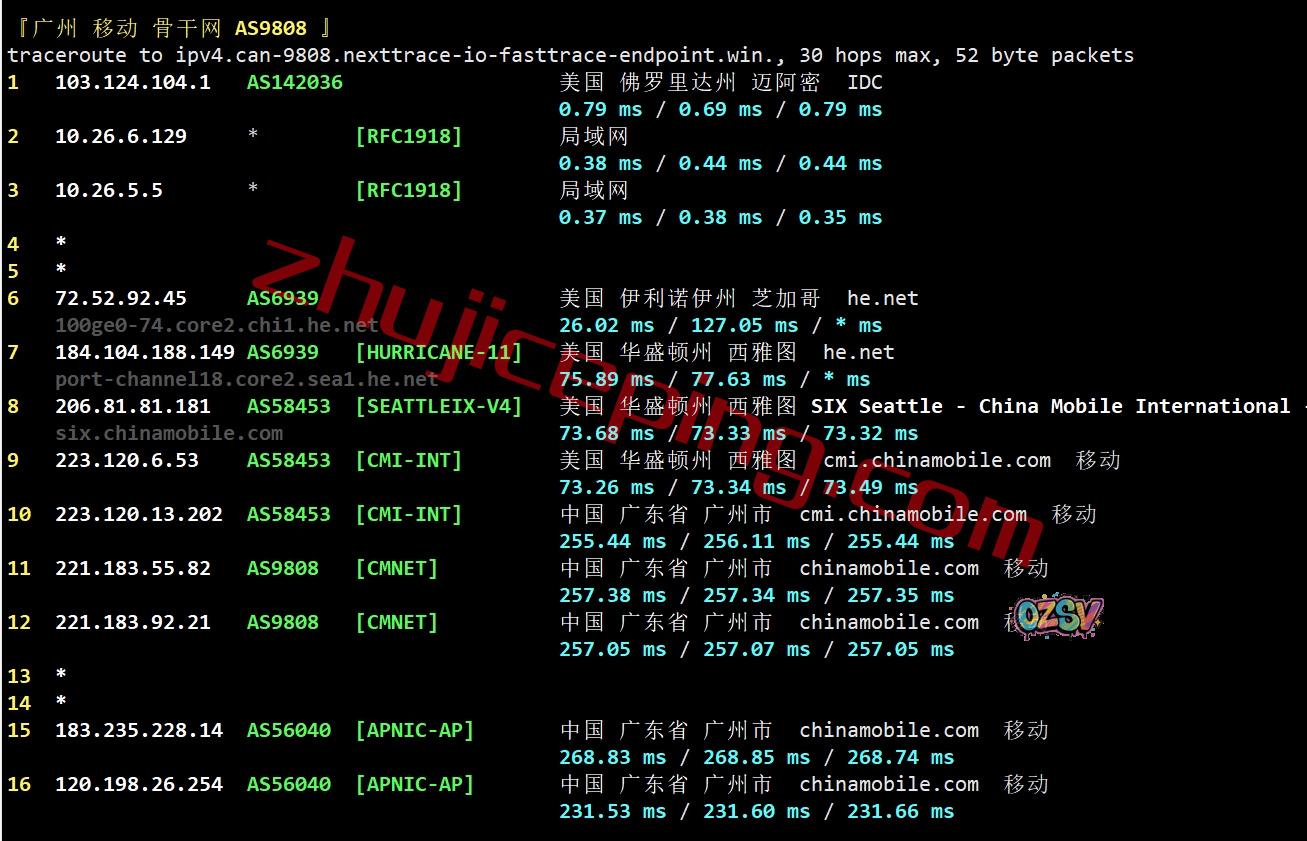 广州方向:走HE到西雅图,从移动CMI西雅图节点直连回国