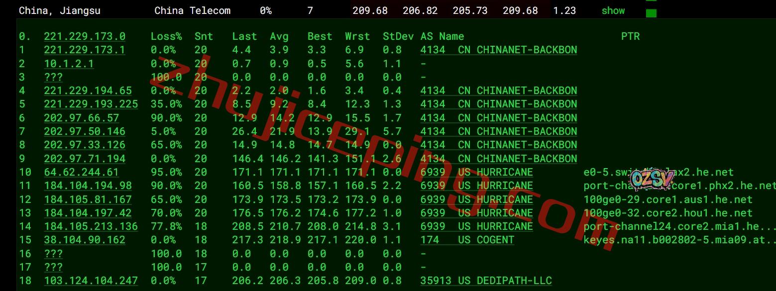 电信去程:直连电信洛杉矶节点然后转HE.NET去美国东南方向