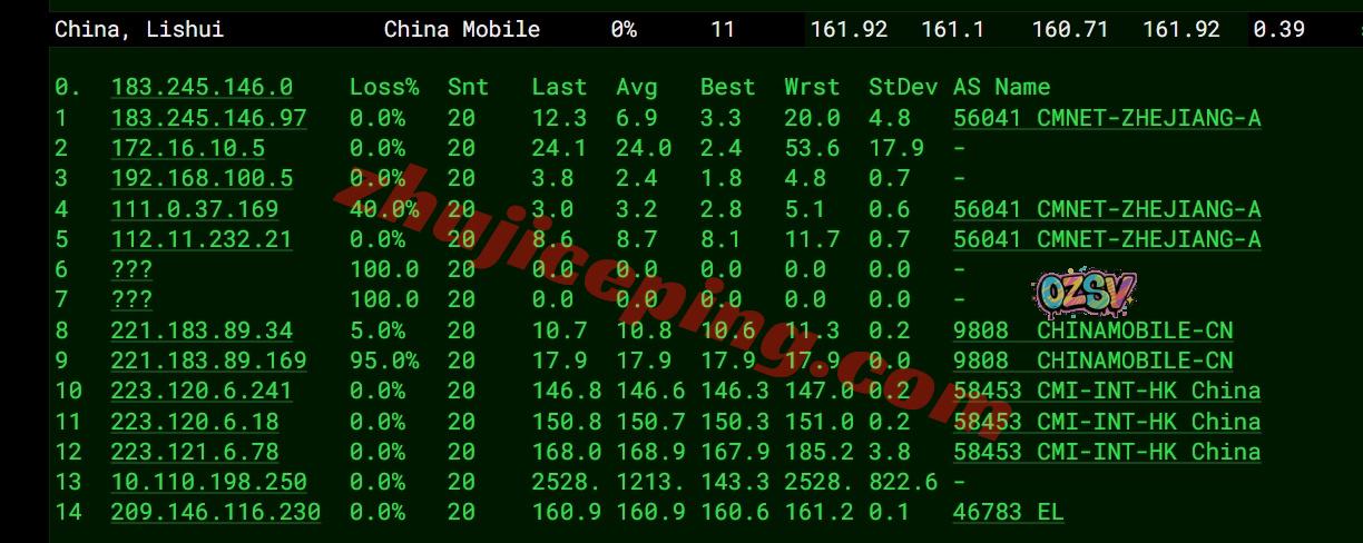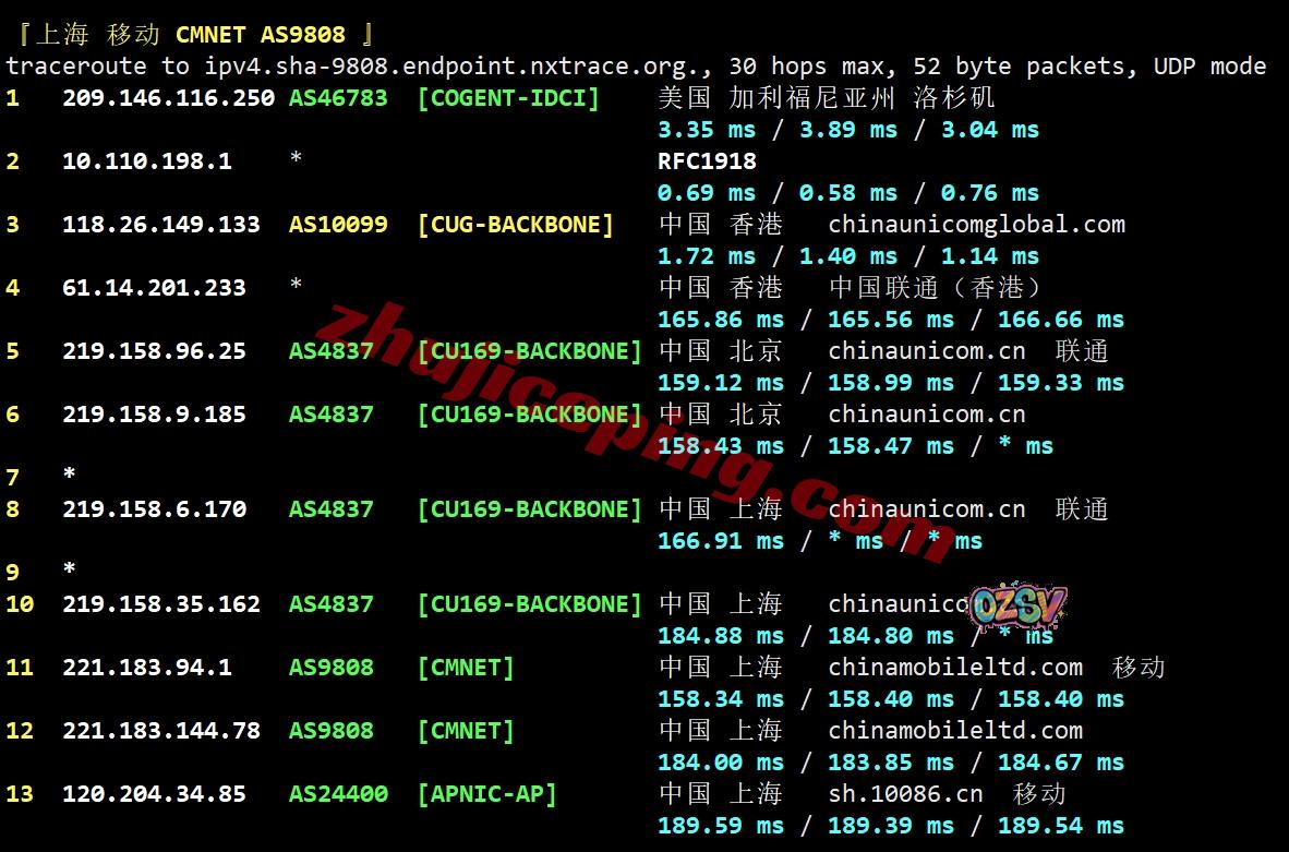 移动去程:直连移动美国洛杉矶节点然后再去机房