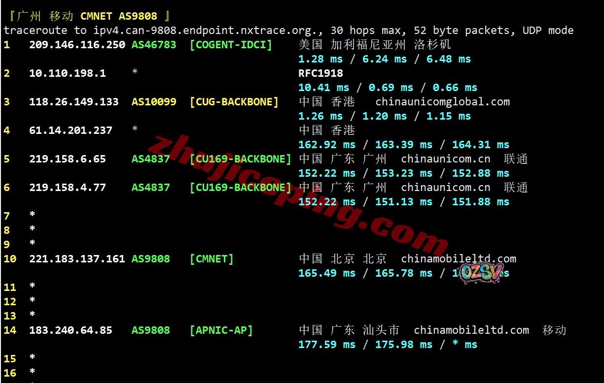 移动回程:走联通AS10099国际段到香港再接AS4837回内地