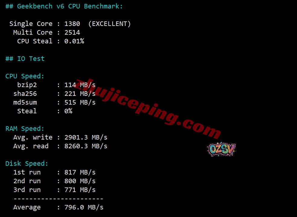 VPS性能测试,部分跑分的数据如下: