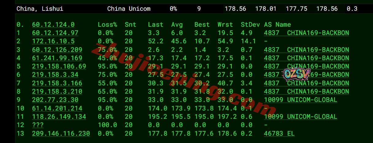 官方宣传的“三网优化:ChinaNet/CUG/CMNET”,实际情况是“三网去程直连,回程全部强制走联通链路AS10099+AS4837回国”,网络效果还是蛮不错的!