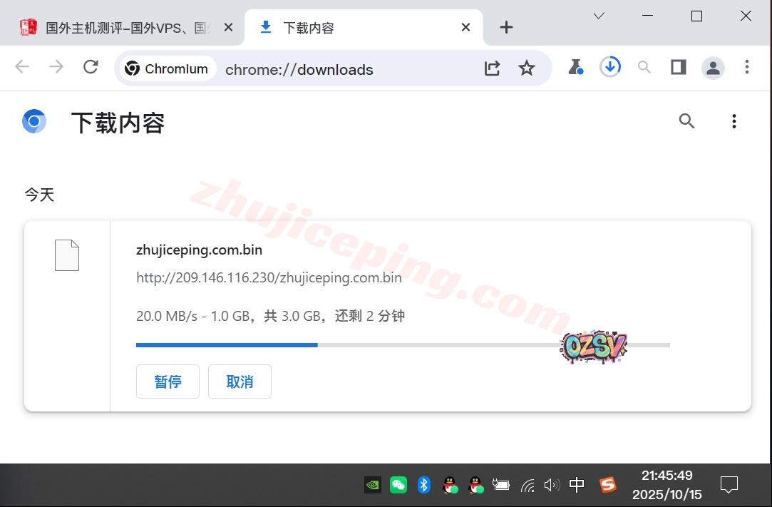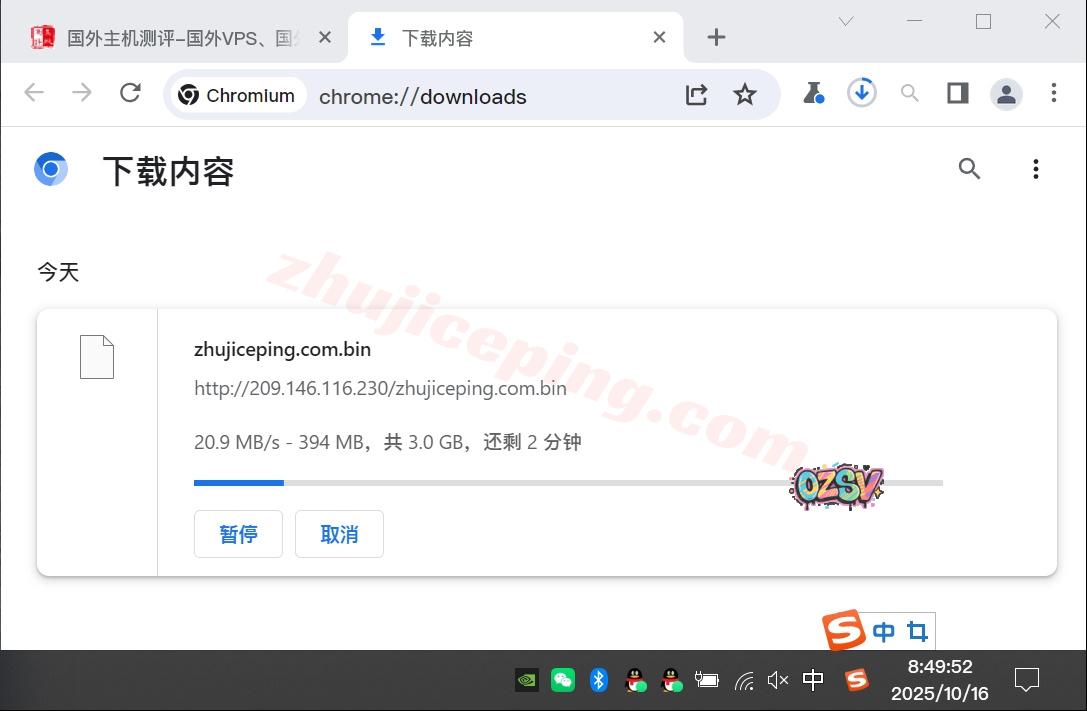 站长广州联通家宽,直接用Chrome下载存放于测试VPS上的文件,大致的下载速度如下所示: