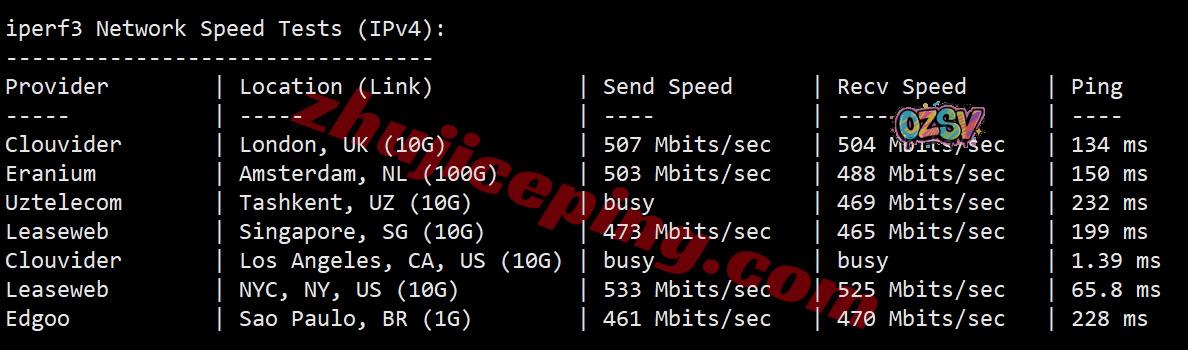 IPERF3测试,几个国际热门节点的实测数据: