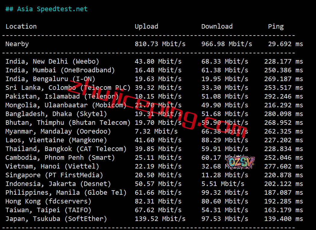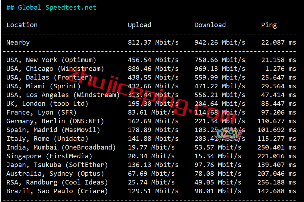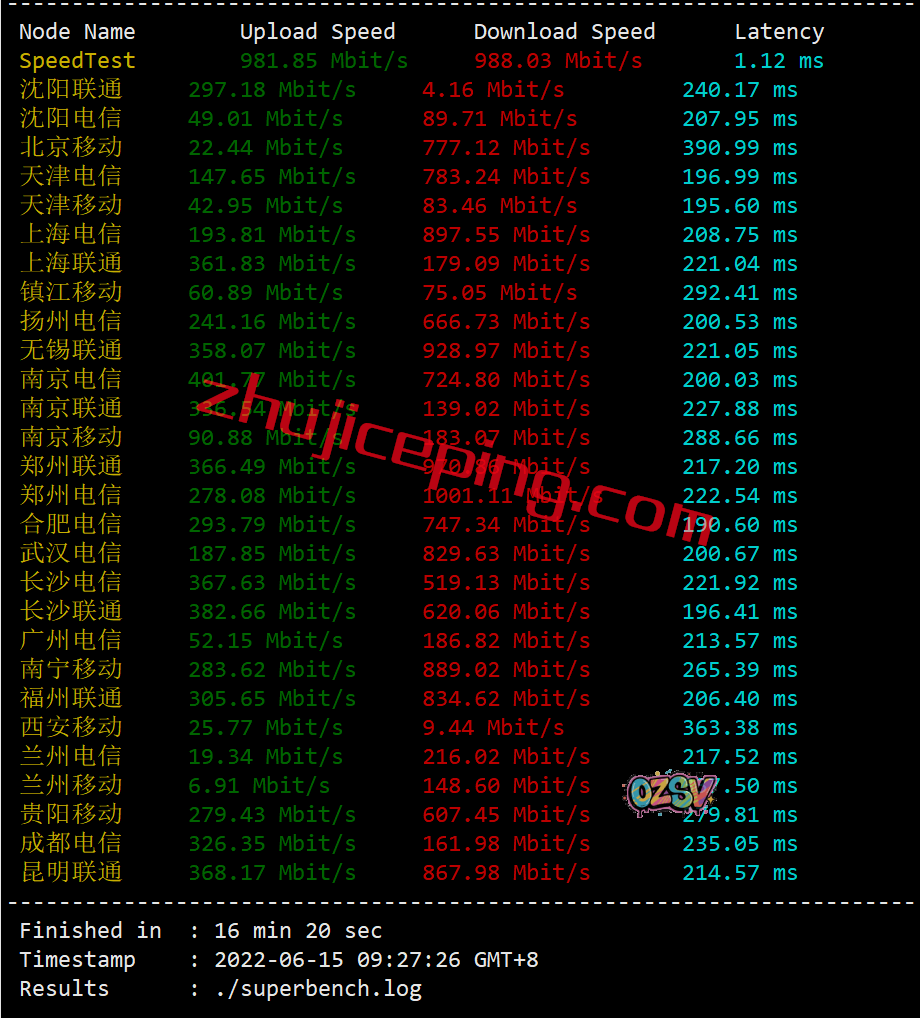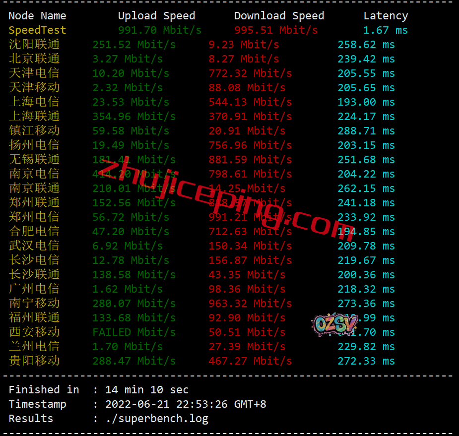 云服务器在国内能跑多多少上下和下行估计很多人想知道,先看看白天的不同节点的测试效果吧,大致数据: