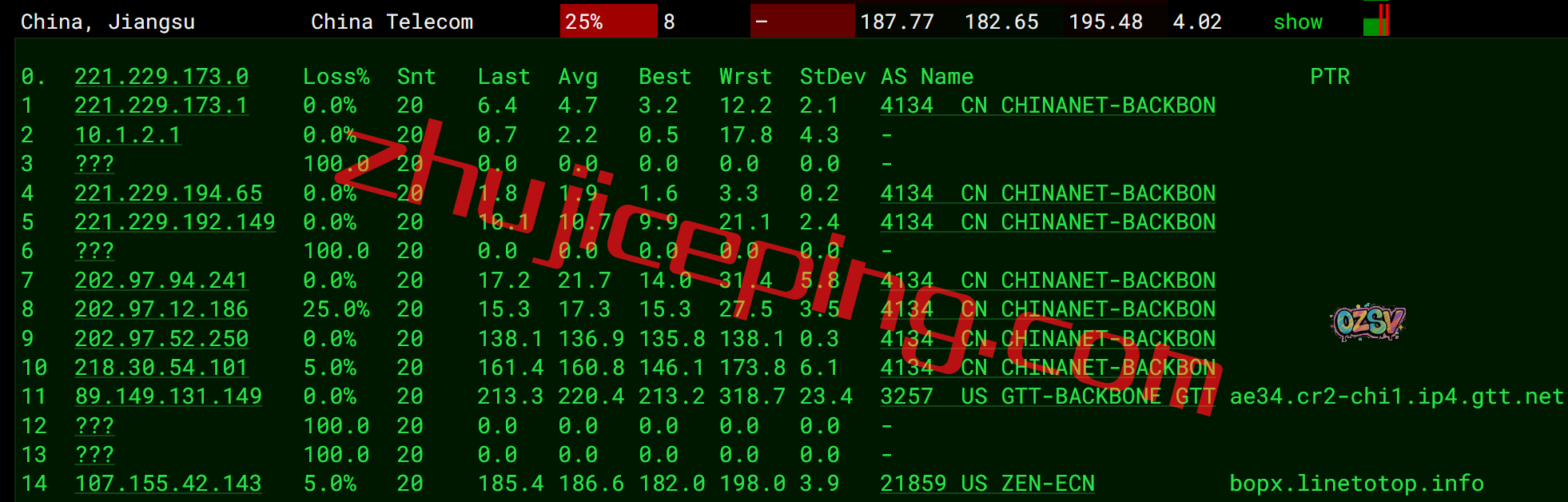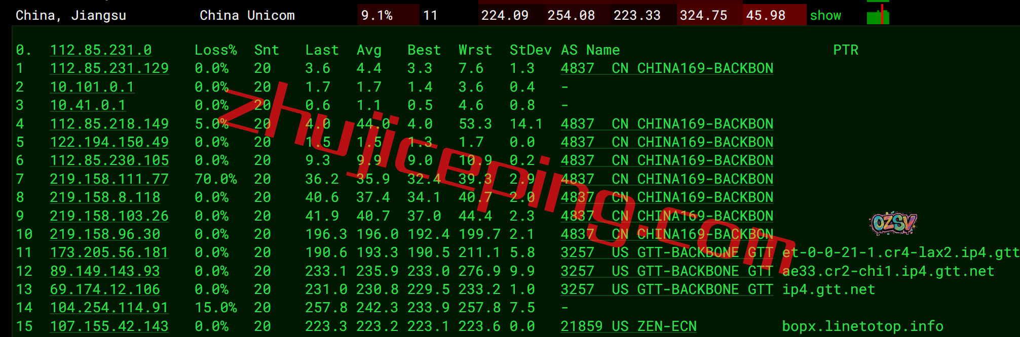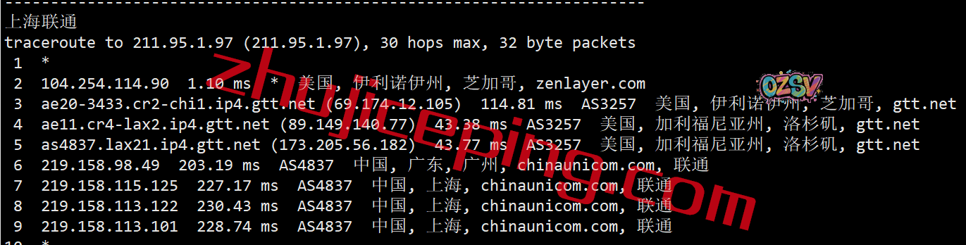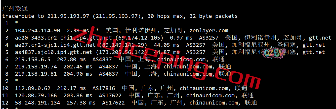 回程,到国内电信:一路走cogentco从圣何塞出口对接电信骨干