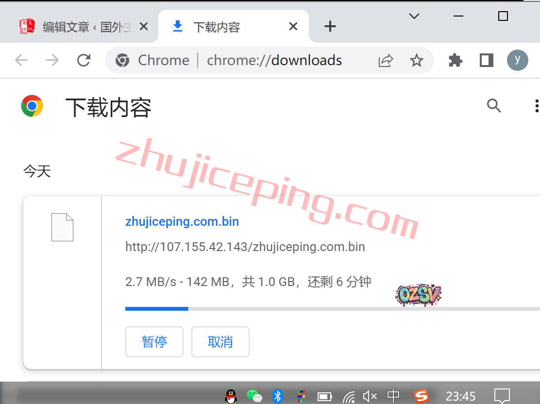 存放在测试小鸡上面的文件,广州电信,Chrome浏览器下的直接下载速度: