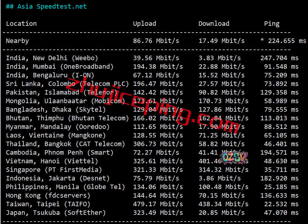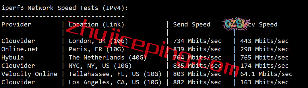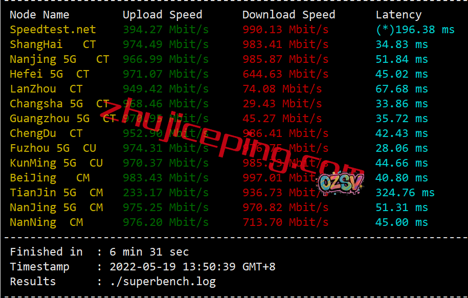 用speedtest.net来测试下小鸡能跑带宽到什么程度,第一行为就近节点,其余的是大陆的三网(电信、联通、移动)的测试数据。我们绝大多数时候都看中的上行带宽,从下图中大致能看到上行基本都能跑到900Mbps以上: