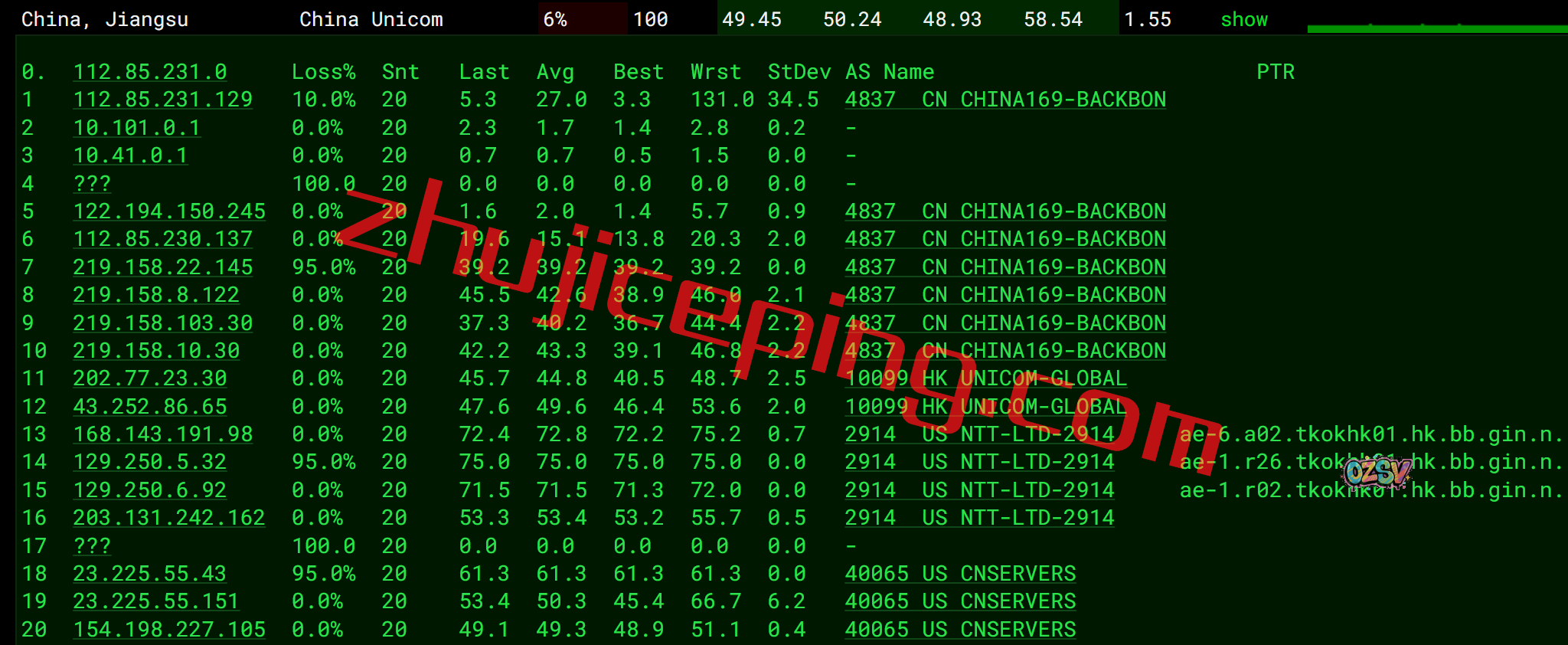 联通去程,联通AS4837对接联通国际AS10099到香港后转NTT: