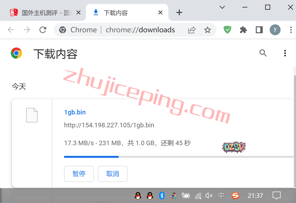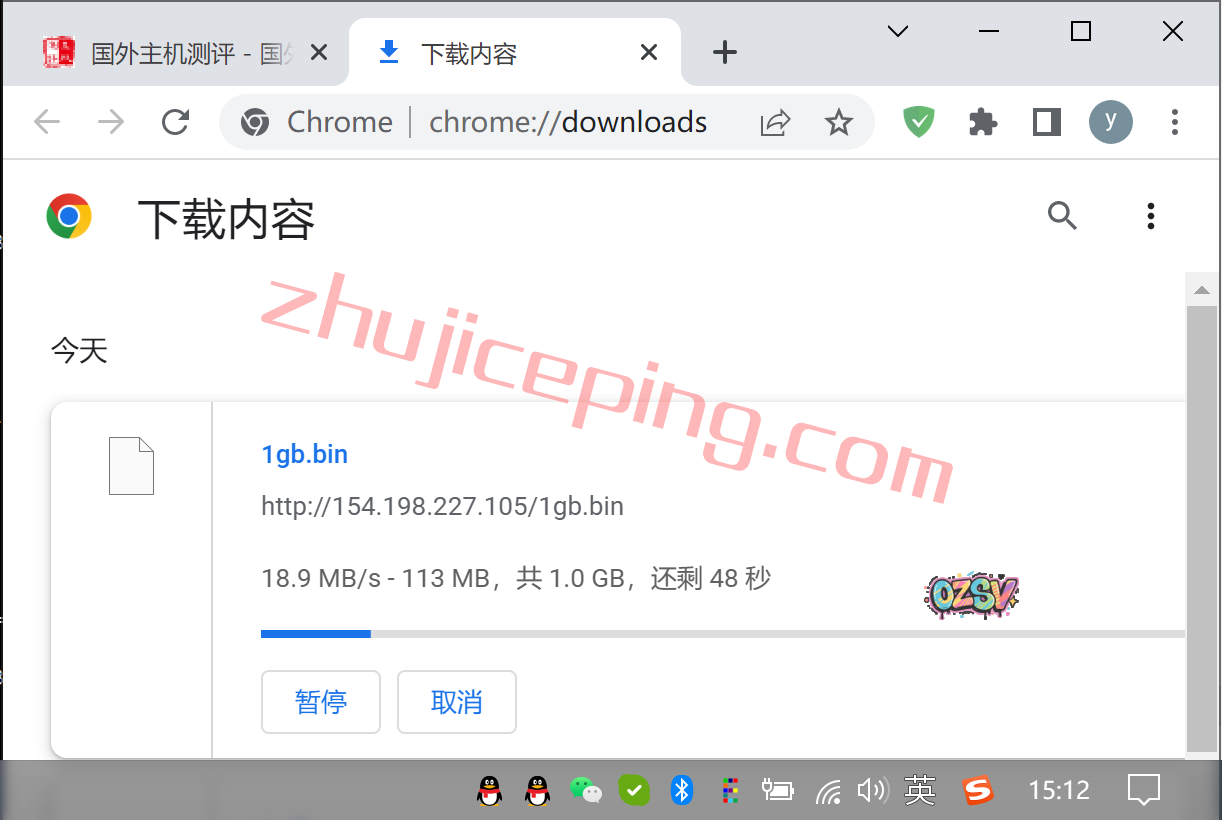 存放在小鸡上面的文件,广州电信下载速度能跑18.9MB/s: