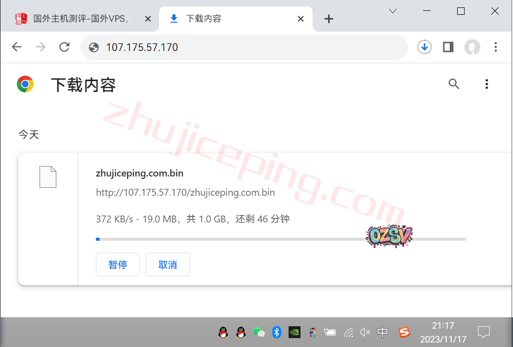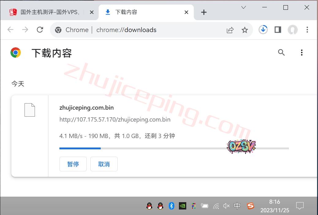 存放在测试VPS上面的文件,广州联通直接浏览器下载,大致速度: