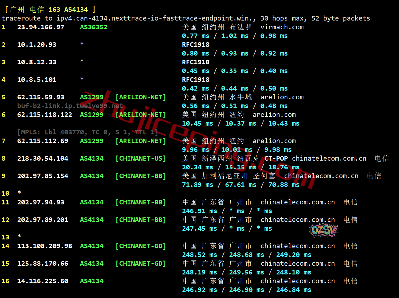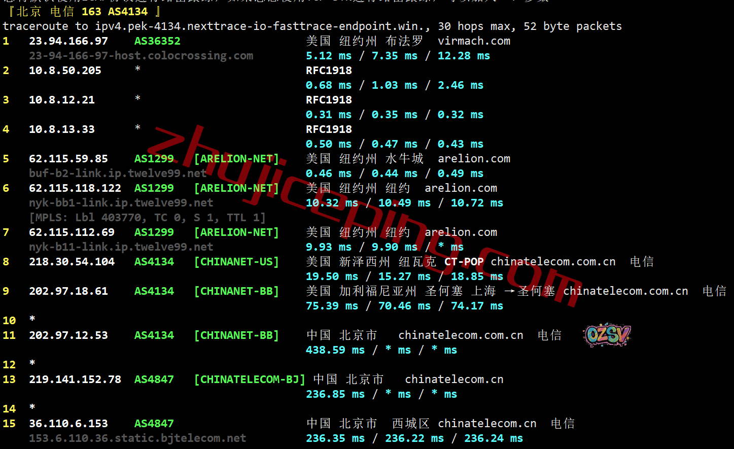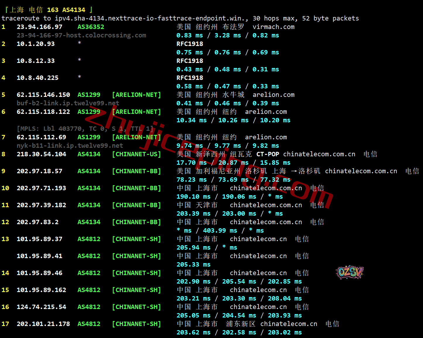 电信回程:纽约twelve99接新泽西纽瓦克电信的pop然后直接到电信圣何塞/洛杉矶节点接着直连回国