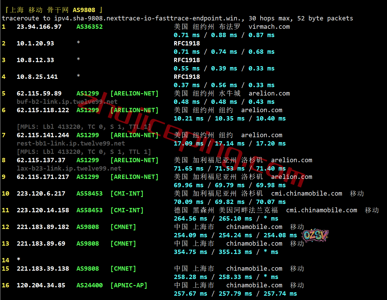 上海:走twelve99刀洛杉矶,然后从移动洛杉矶节点直连回国