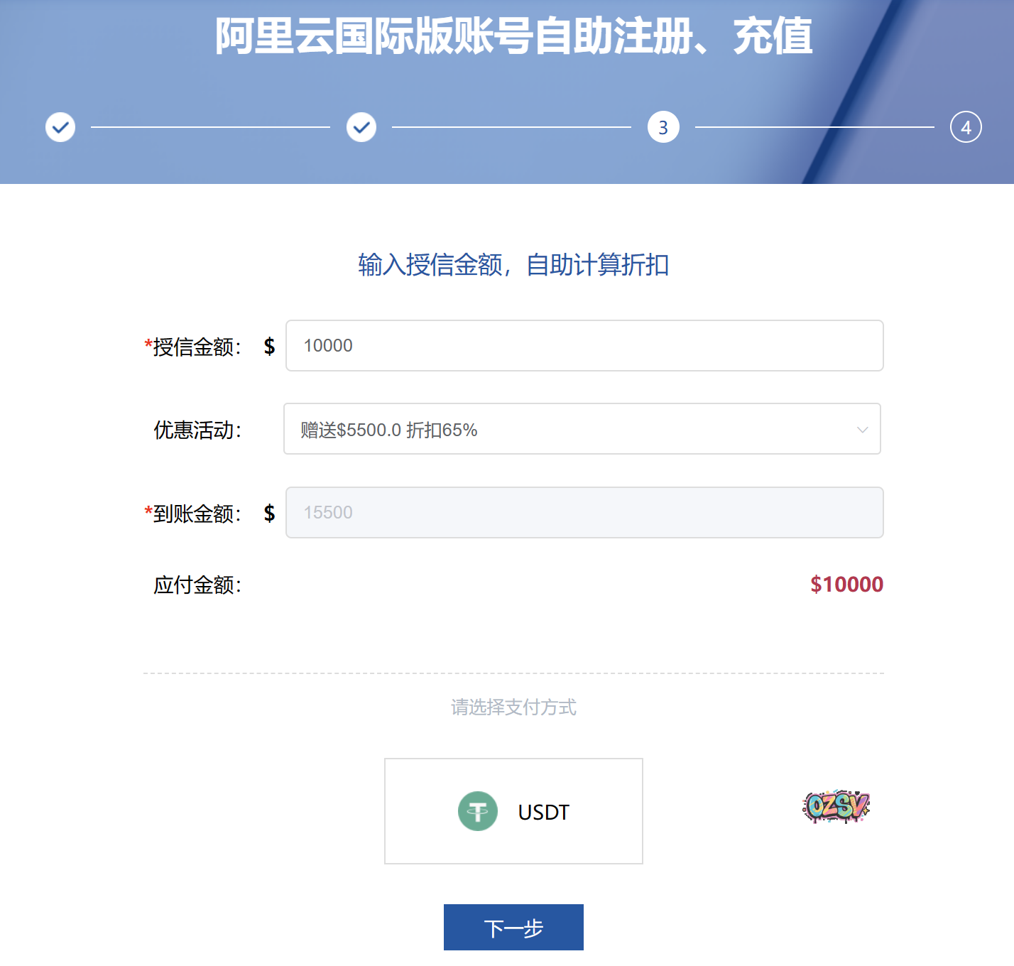 客户在授信时,平台自动计算折扣优惠,无需跟销售讨价还价,直接享受最低折扣,支持付U!