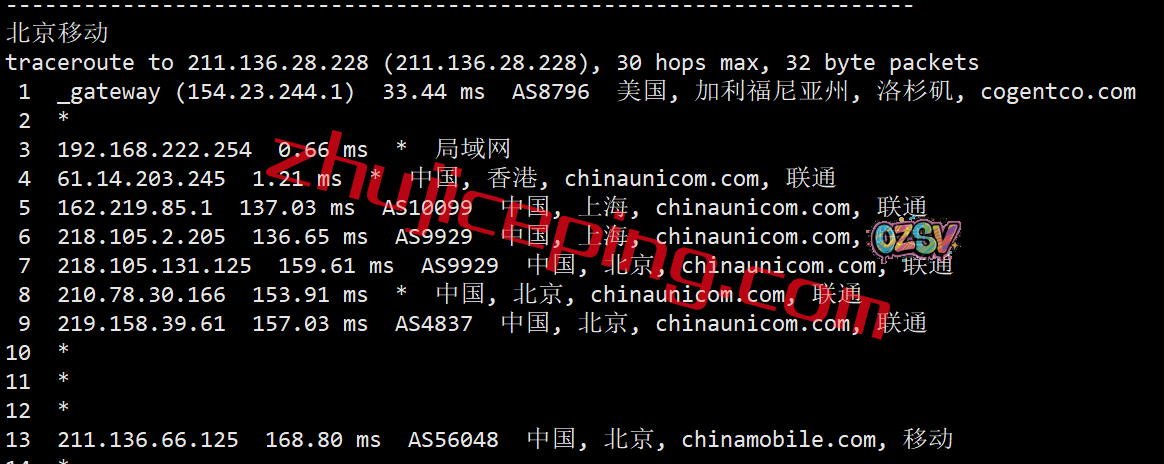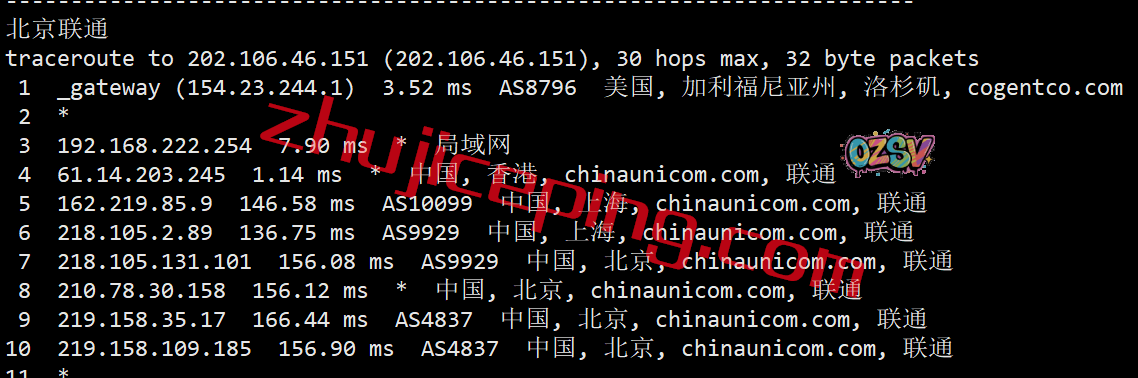 北京和上海方向:强制走的联通高端AS9929链路回来