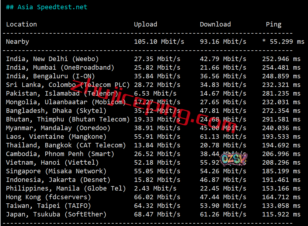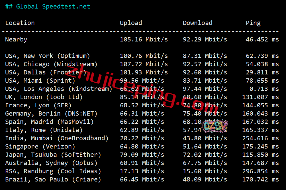 最低配给的是100Mbps带宽,从speedtest.net在国内三网不同节点的测试来看,效果还是相当好的,至少带宽充裕,线路来国内好,可以跑满: