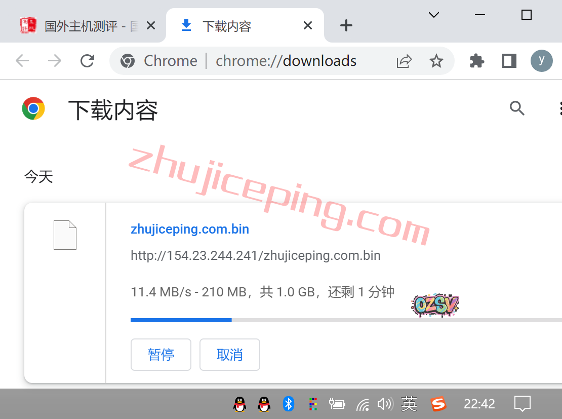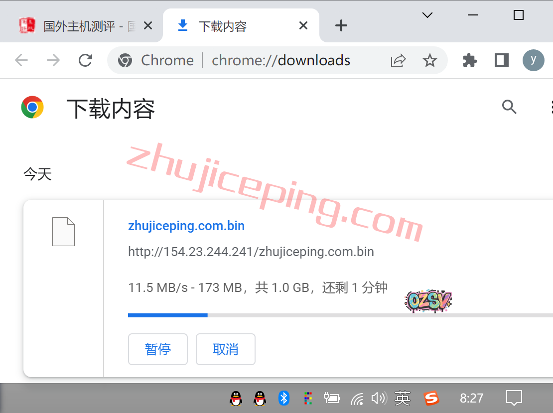 存放在测试小鸡上的文件,广州电信,直接用Chrome下载,看看速度: