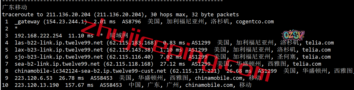 电信:双程CN2,联通:双程CUII,移动去程直连回程走CUII(广州方向是双向直连)。