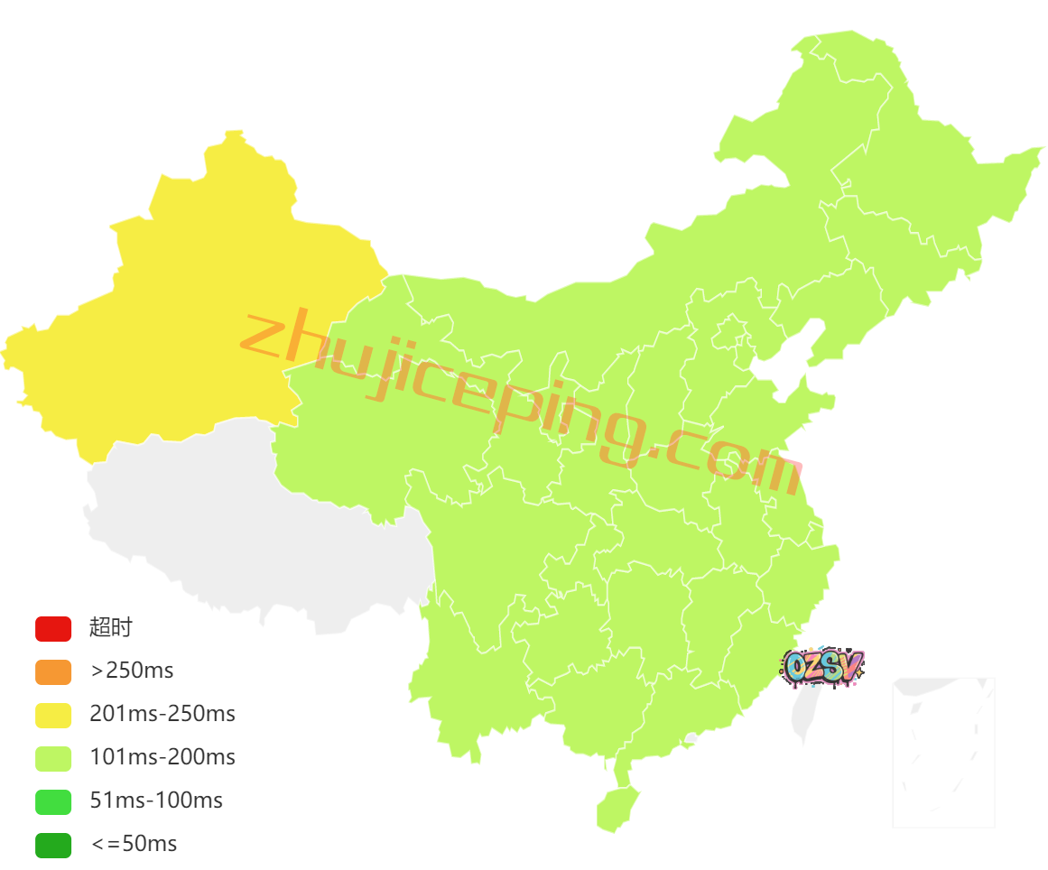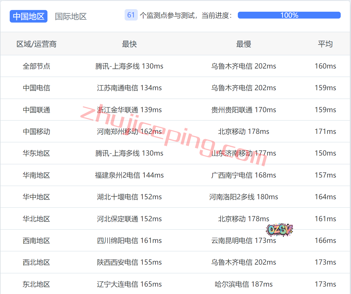 国内三网不同节点的延迟测试,注意这个延迟是晚上测试的: