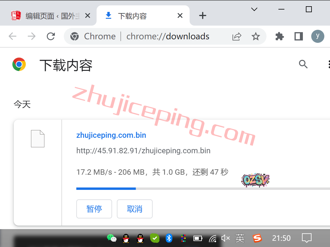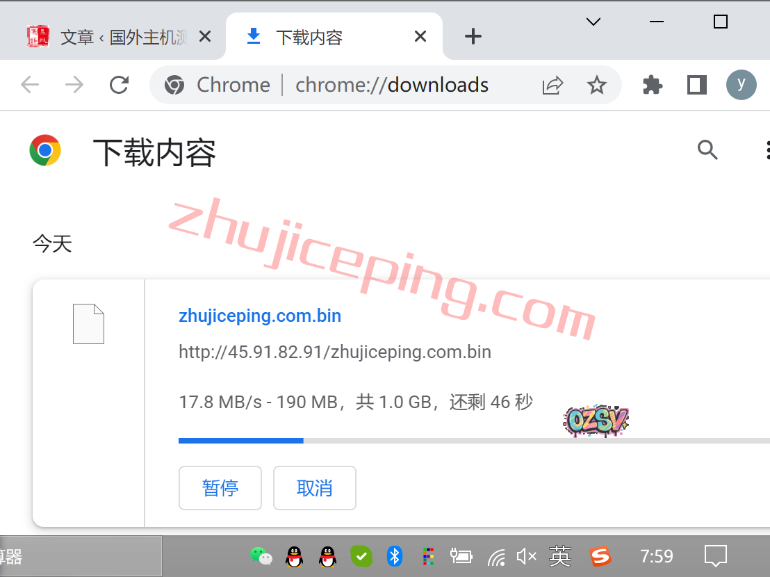 存放在测试小鸡上面的文件,广州电信,Chrome直接下载,速度如下: