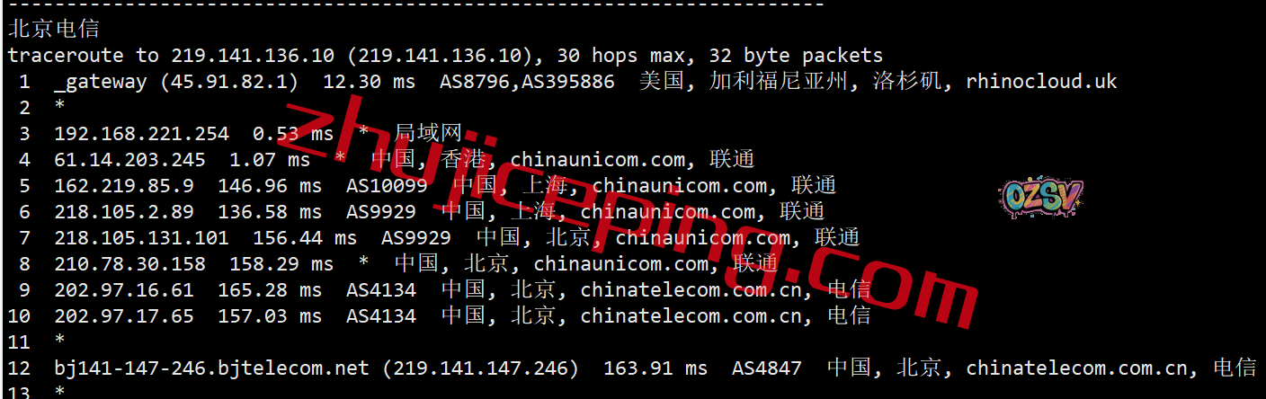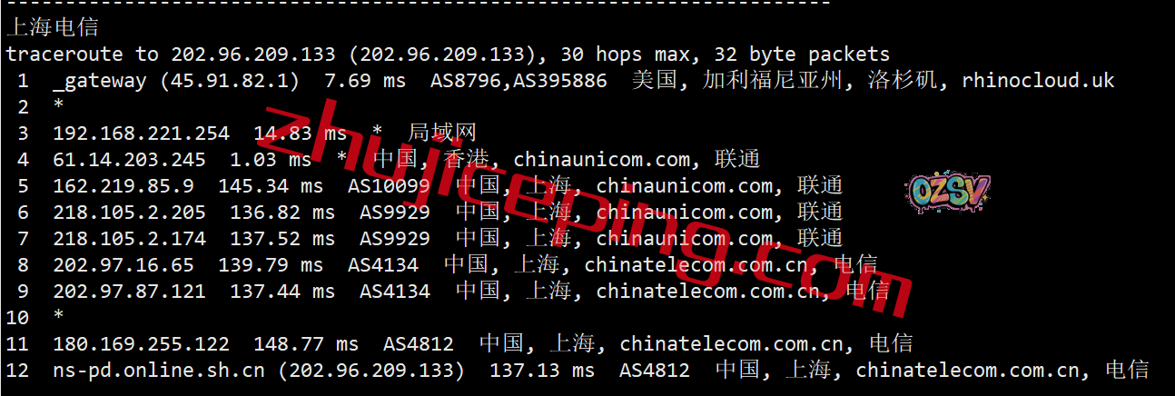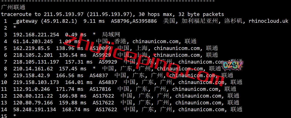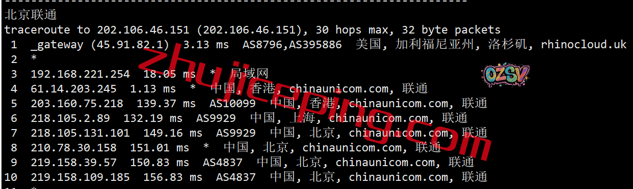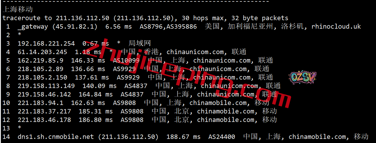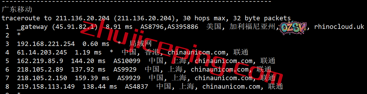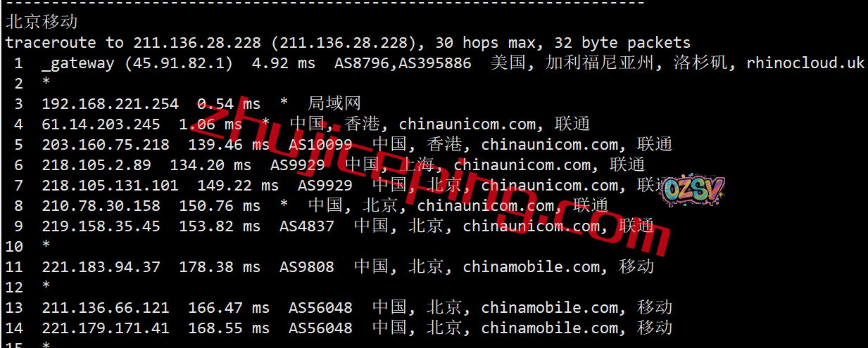 回程,到国内移动:也是强制走联通AS9929的链路回国后转移动