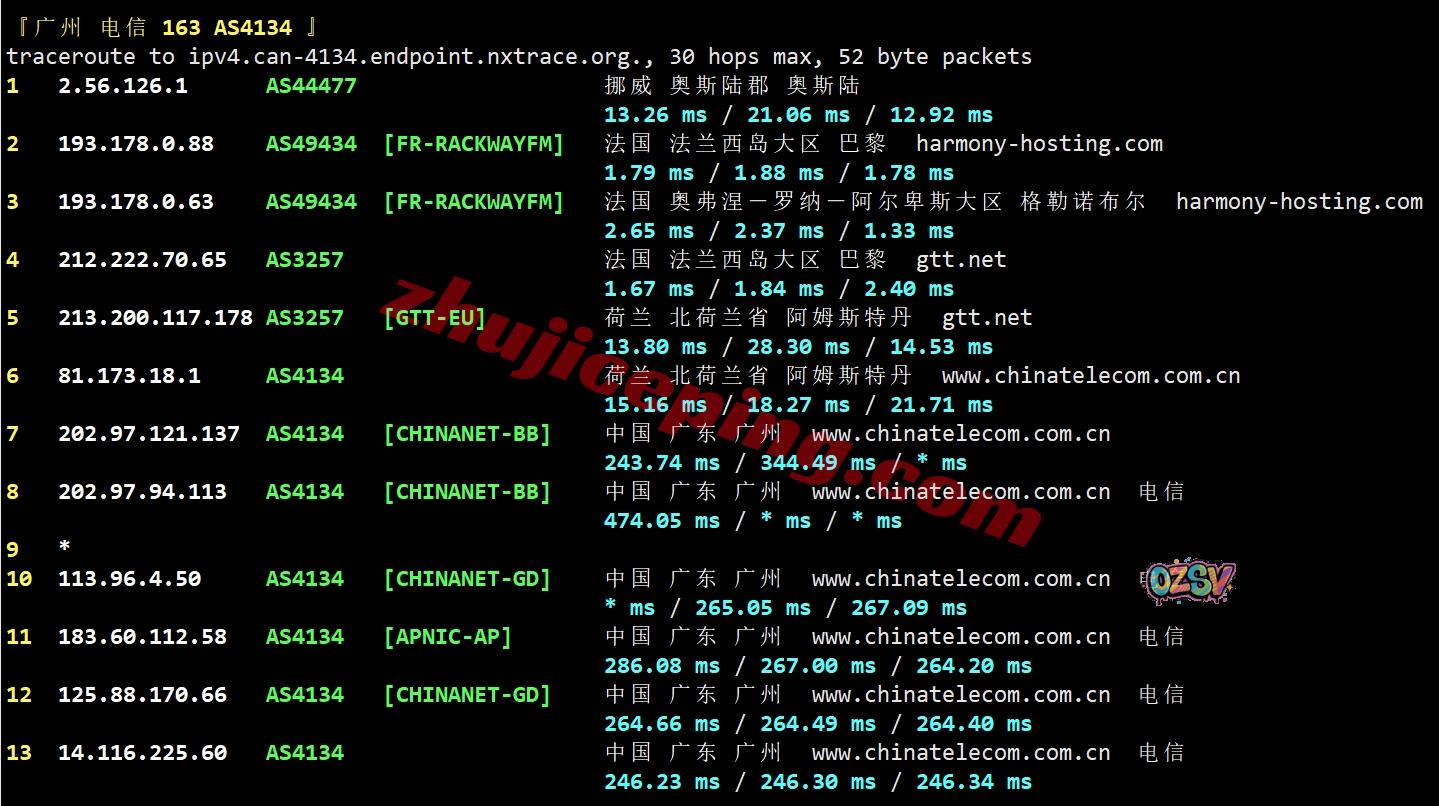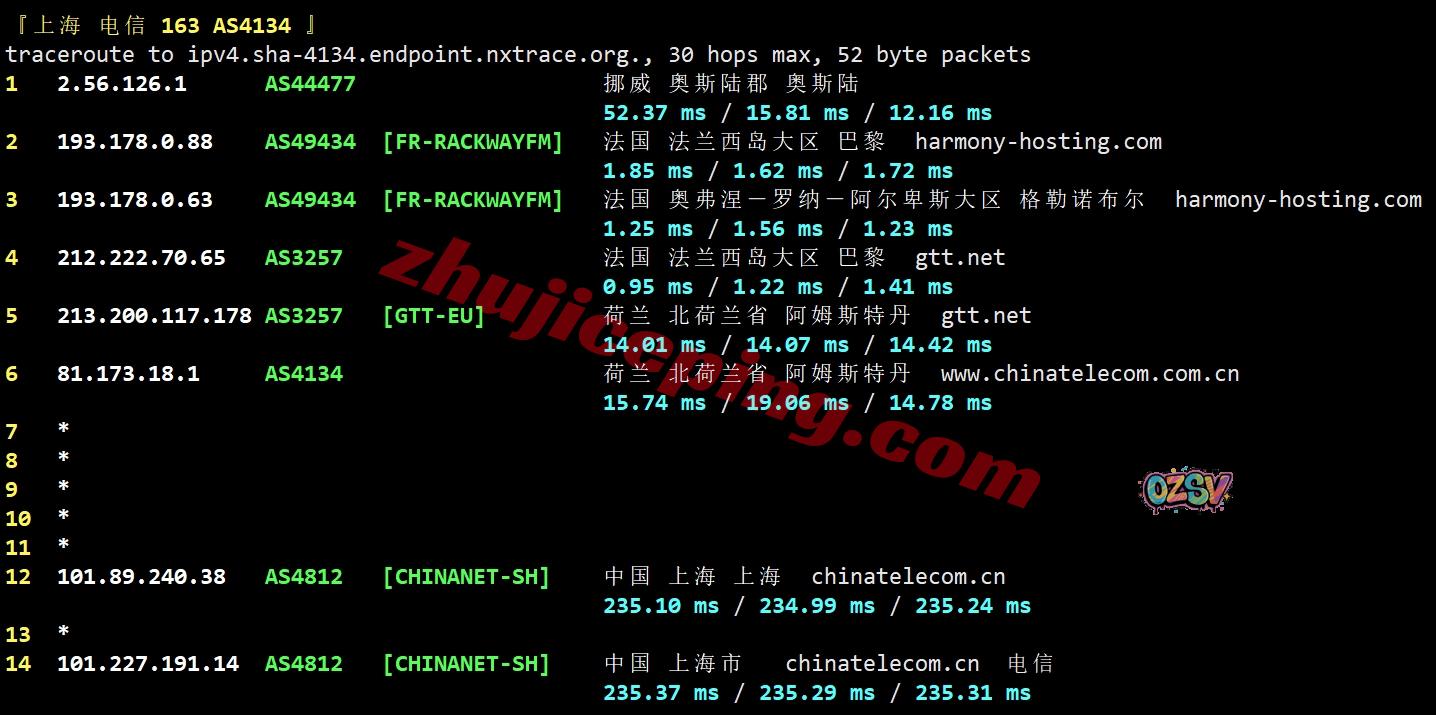 上海/广州方向:走GTT到荷兰,从电信荷兰节点直连回国