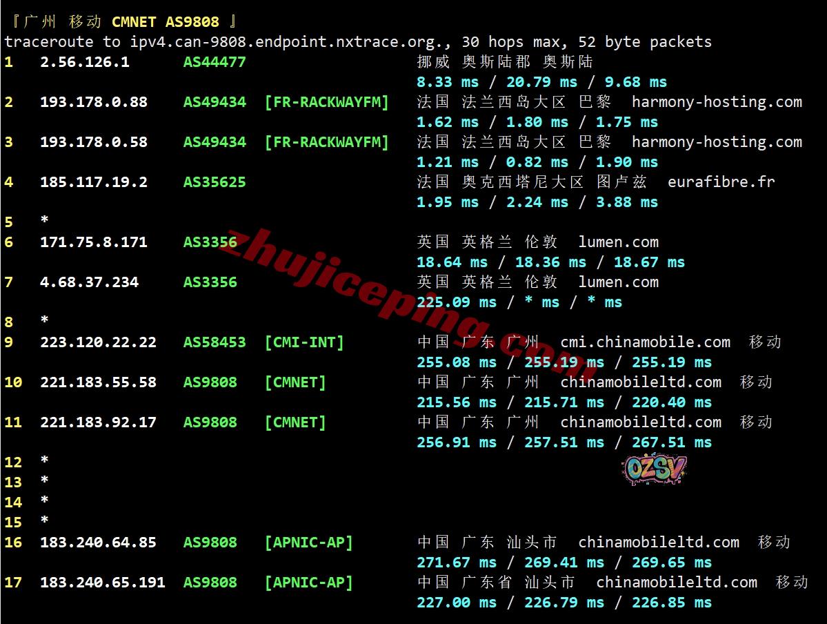 移动去程:直连移动英国伦敦节点然后接lumen去法国
