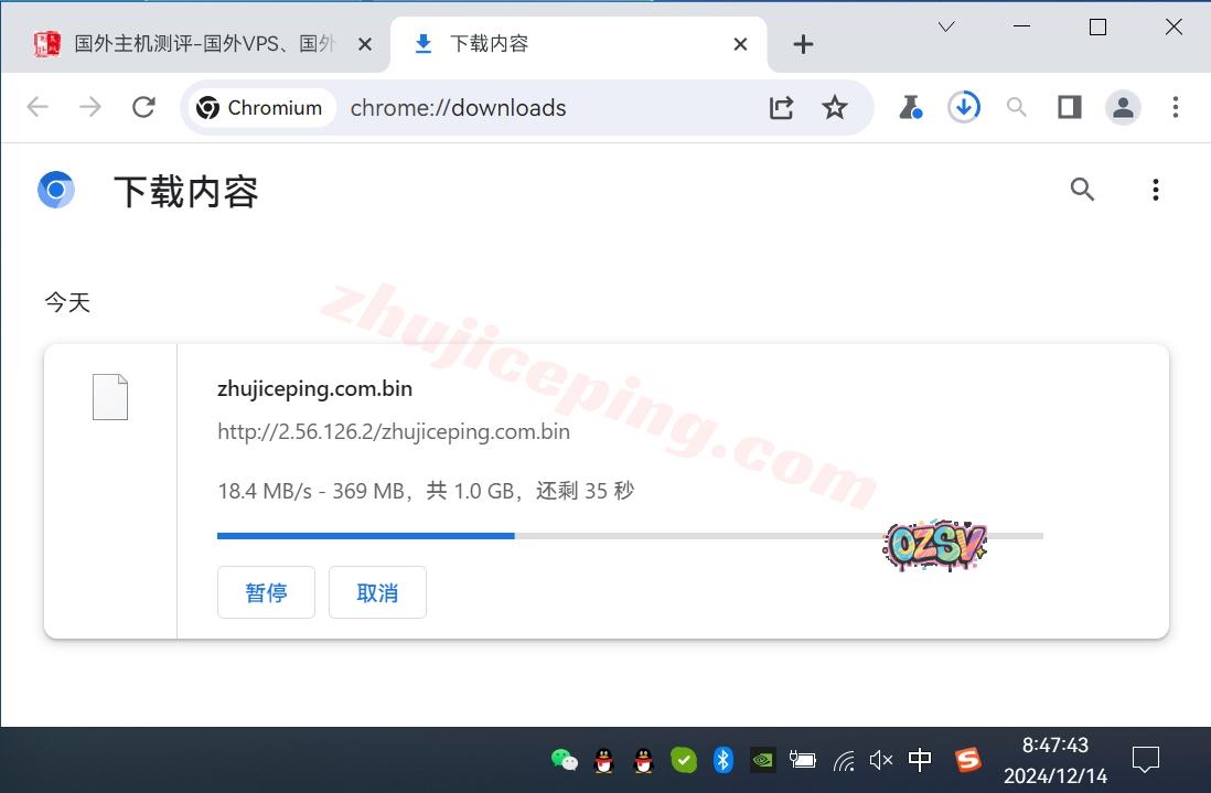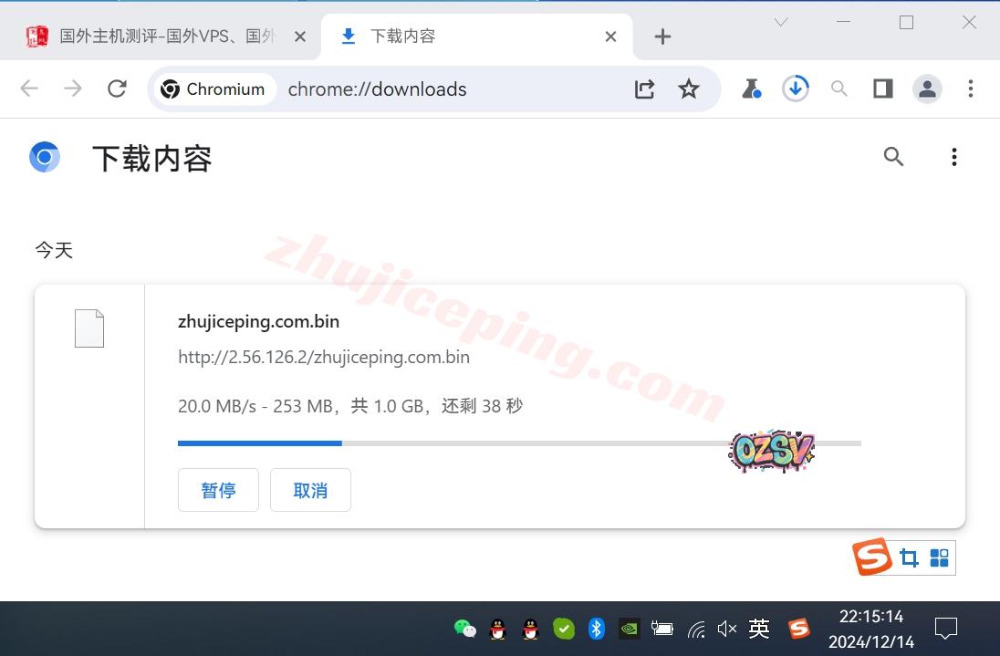 存放在测试VPS上的文件,广州联通家宽直接用Chrome下载该文件,大致的下载速度: