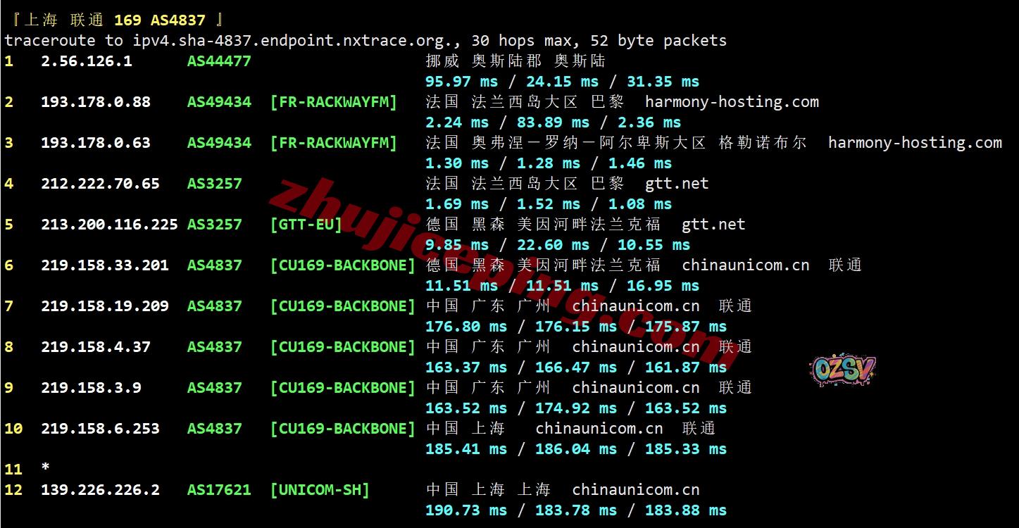 联通回程:走GTT到德国,从联通德国法兰克福节点直连回国