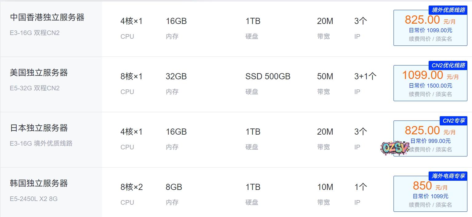 | 韩国 | 4G | 4核 | 80G | 20M | 388元/年 | 链接 |