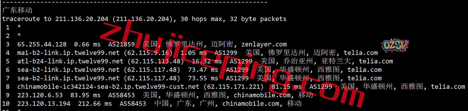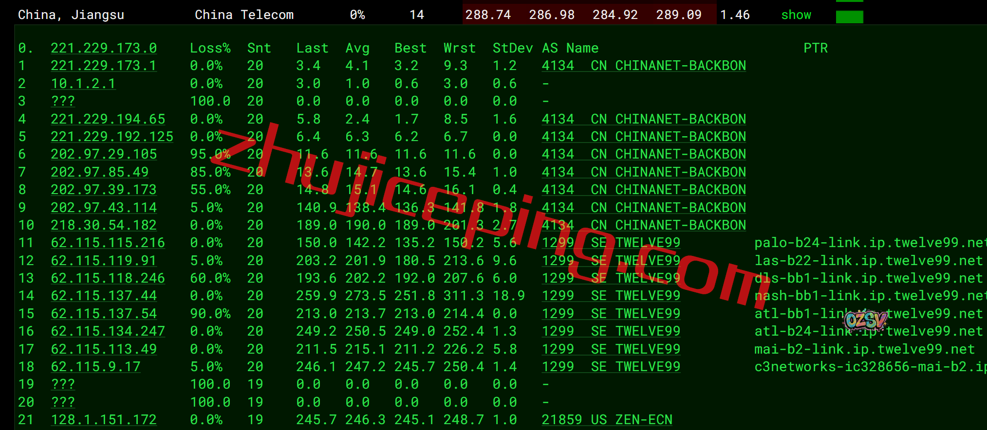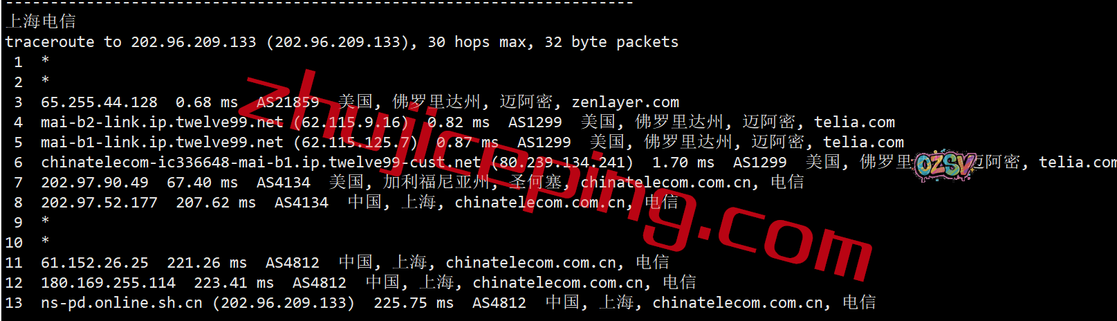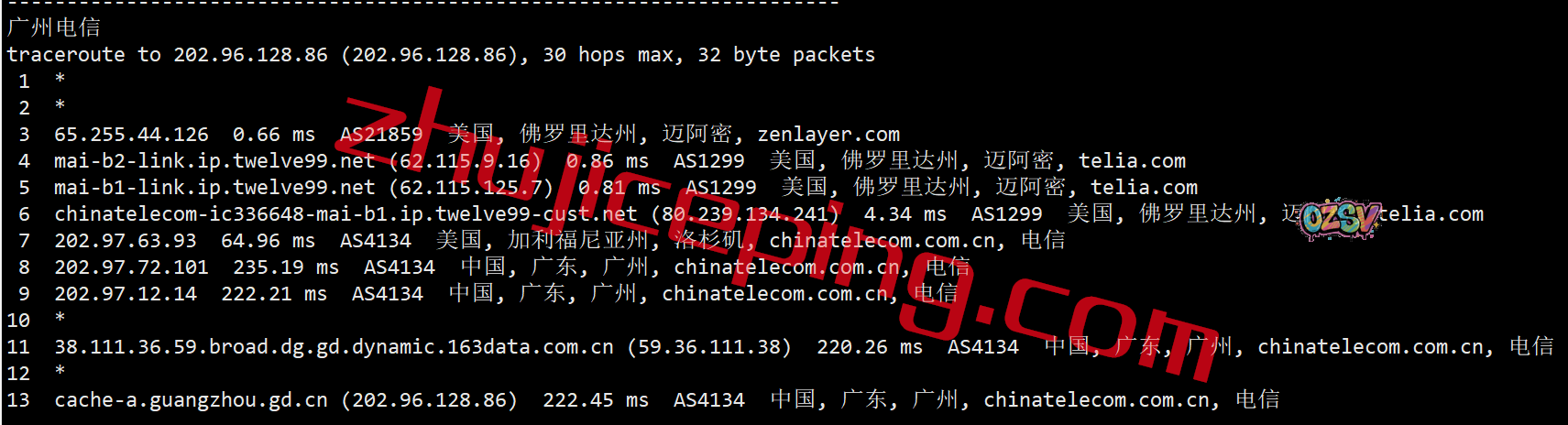 上海和广州方向:走telia在美国西海岸的圣何塞和洛杉矶,然后走电信在这里的节点,接着直连回国