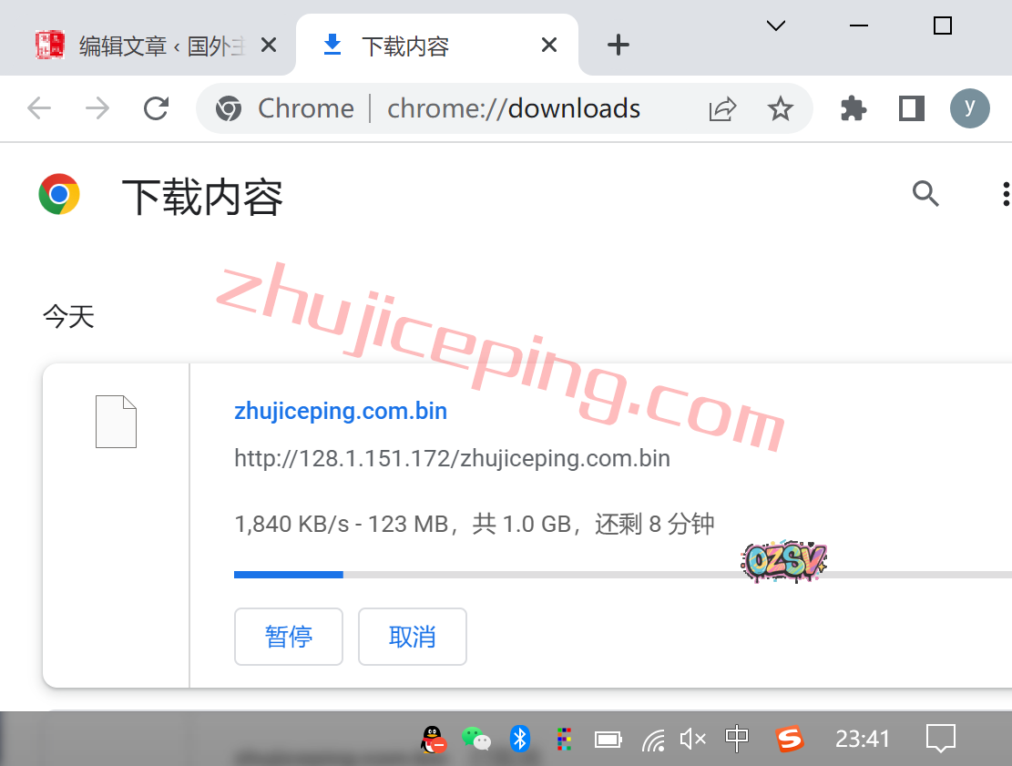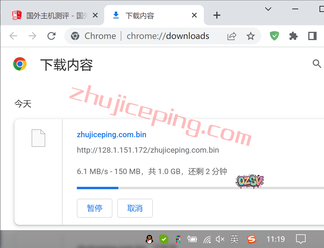 存放在测试小鸡上面的文件,广州电信直接Chrome下载,白天的速度大致: