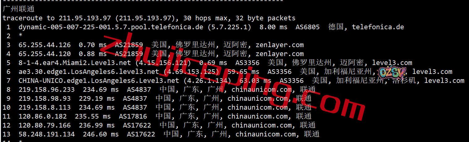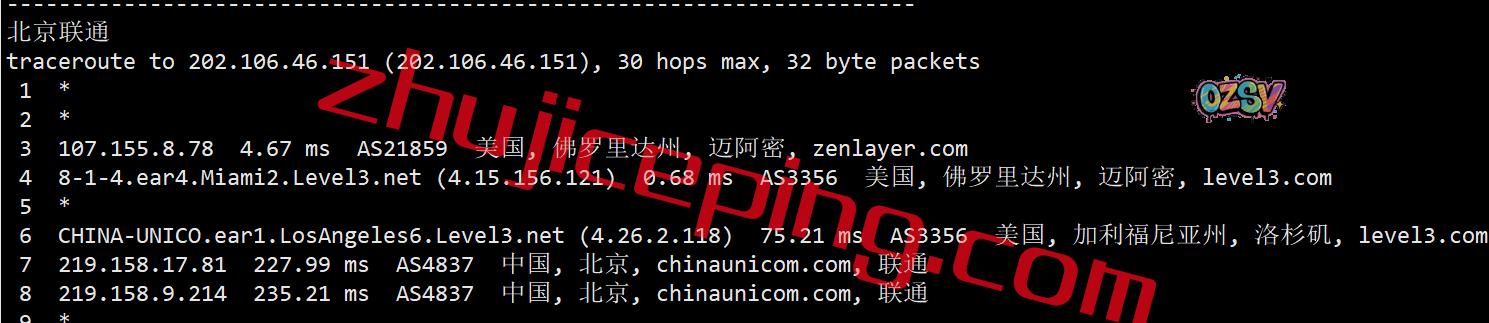 回程,到国内联通:全部都是走level3对接联通AS4837