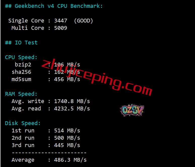 主频大致2.1GHz,开启BBR,zenlayer自己的AS和IP,硬盘当前大致I/O为359MB/S: