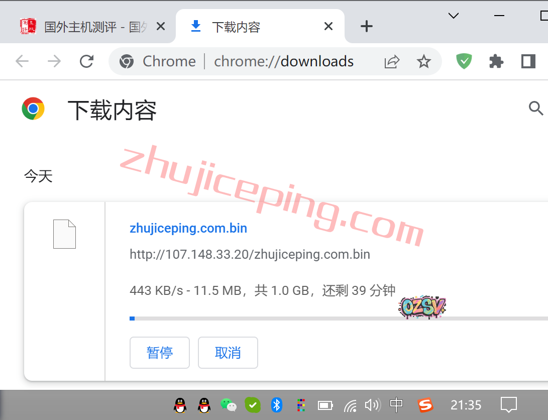 存放在测试小鸡上面的文件,广州电信直接下载测速: