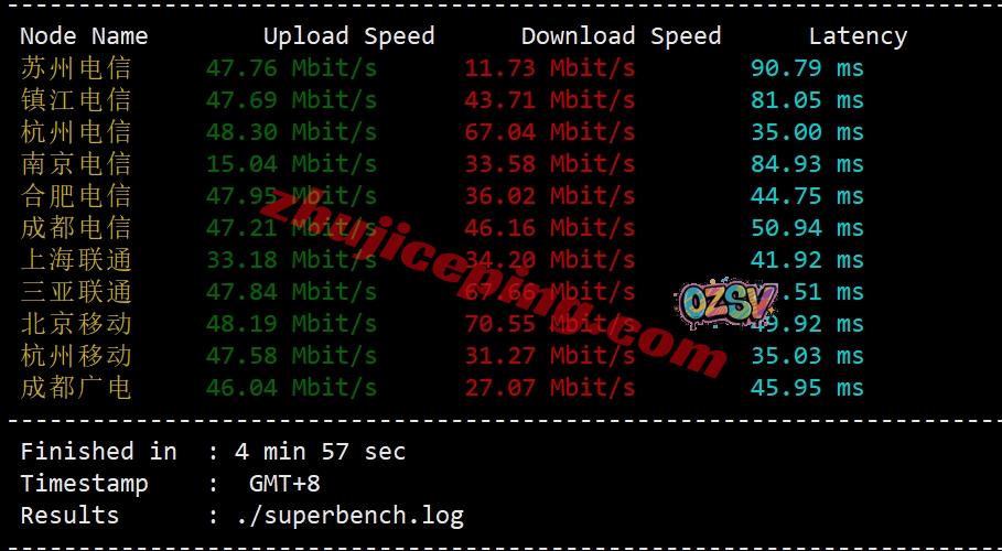 境内三网多节点的带宽上下行测试数据如下: