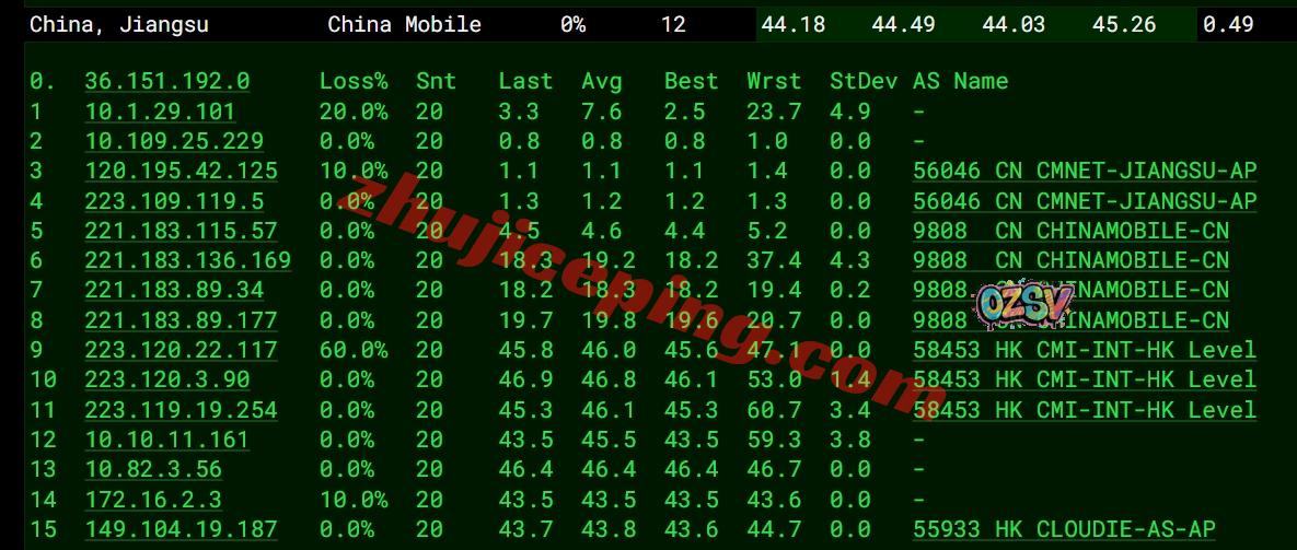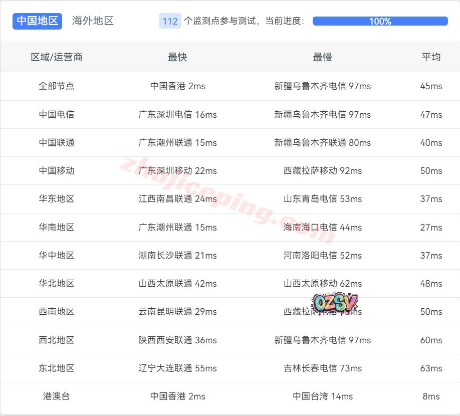 国内三网多节点的延迟测试数据: