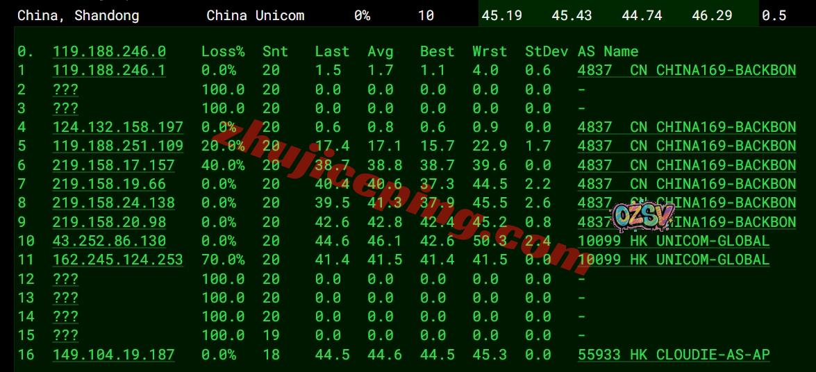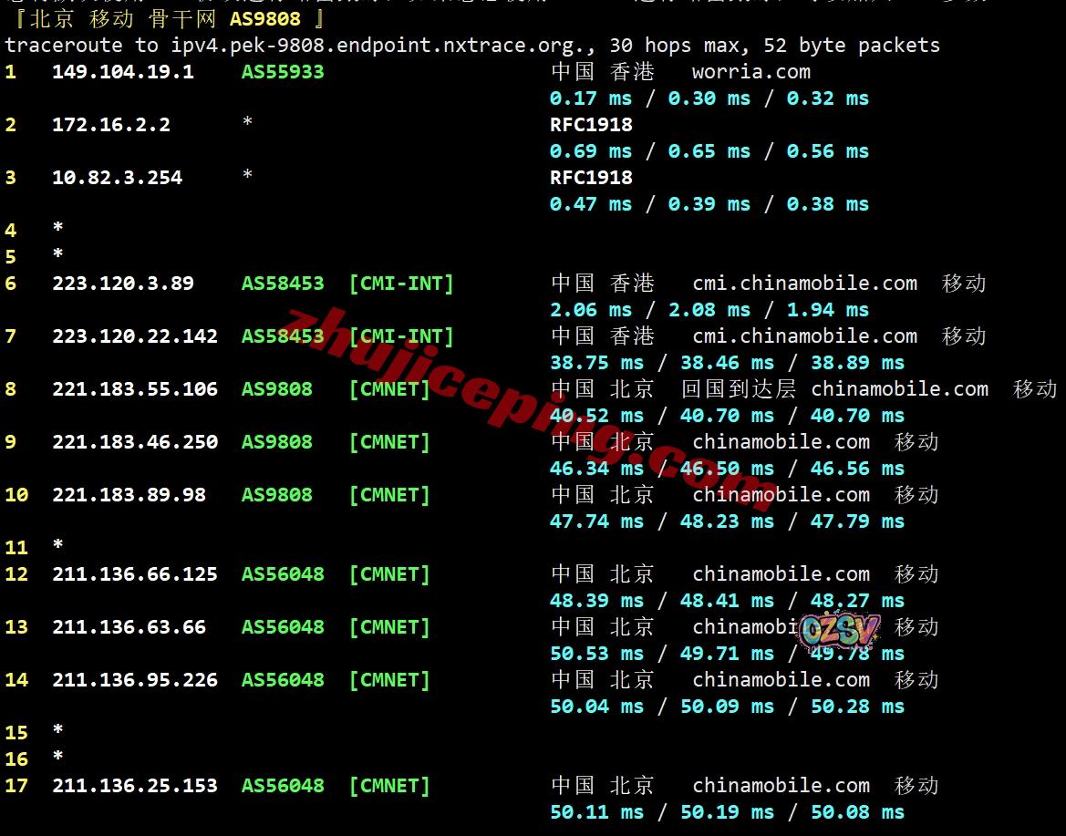 网络方面,去程三网直连(电信还有CN2),回程方面,电信和联通都走AS4837回来,移动走自己的CMI回来…