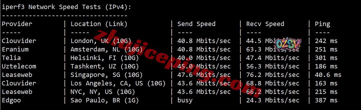 iperf3测试,几个国际热门节点的测试数据: