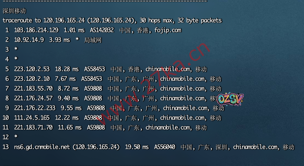 中国移动去程: