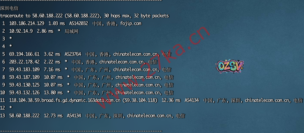 中国电信去程: