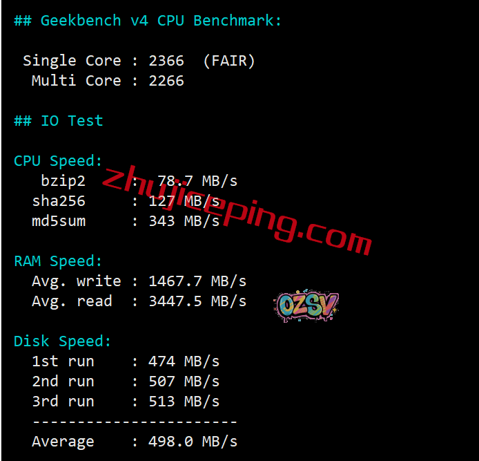 在性能方面,这母鸡明显不够搬瓦工的香港cn2 gia和日本cn2 gia的那么强悍,不过建站等任务还是完全没问题的。