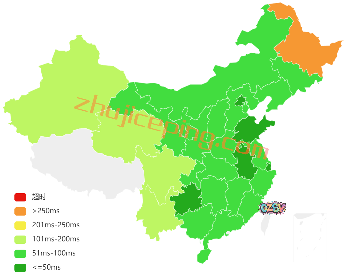 国内多节点检测延迟的数据: