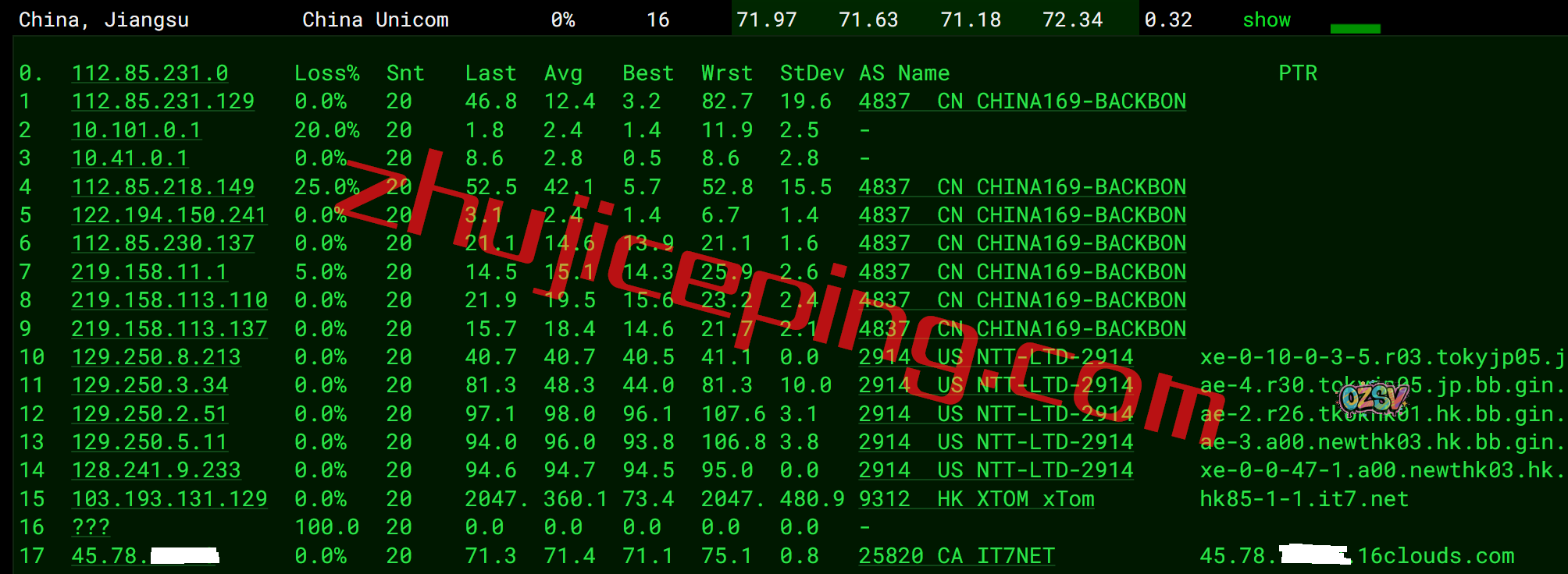 回程,到大陆联通:与电信一样,也是强制都移动CMI链路回来