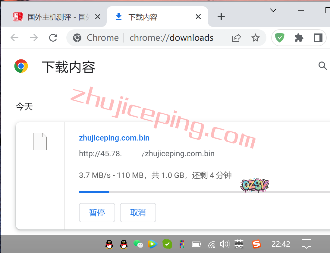 (站长打算留着自己用,不想公开IP)存放在测试小鸡上面的文件,广州电信,白天直接用浏览器下载,速度如下: