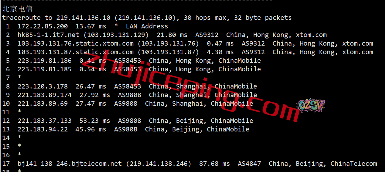 去程,电信和联通绕了一下日本,相对来说也还行至少是大带宽可以抗DDoS,而移动自己去程则是直连没有绕;回程,三网都是强制走的移动的链路,移动国际段AS58453转移动内地段AS9808,然后各回各家各找各妈。