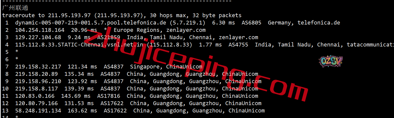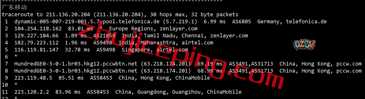 广州方向:走airtel到新加坡再到香港PCCW,然后转移动香港节点,接着直连回内地